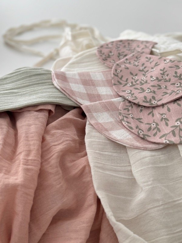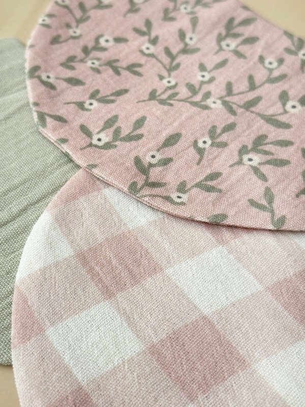 Guirnalda con 8 semicírculos de gasa estampada combinada con gasa lisa.